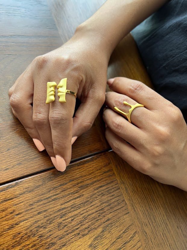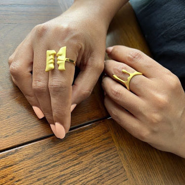 Inspired by the bee life, this Drop honey Muse ring with a lustrous brush finish, is uniquely designed to add a bling to your style no matter the occasion. Wear them on their own as a statement pair or partnered with multiple sterling silver rings for maximalist style.