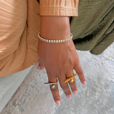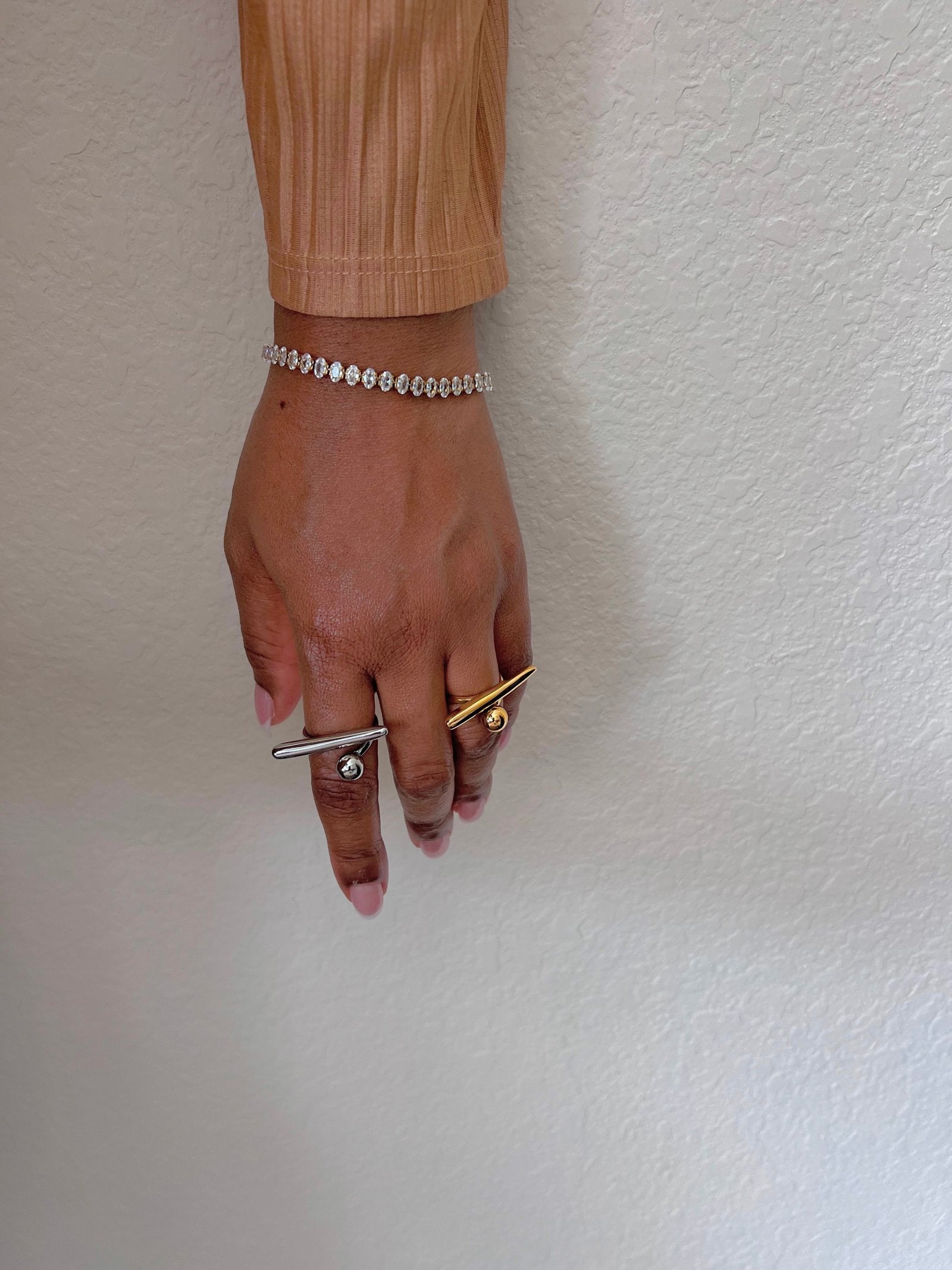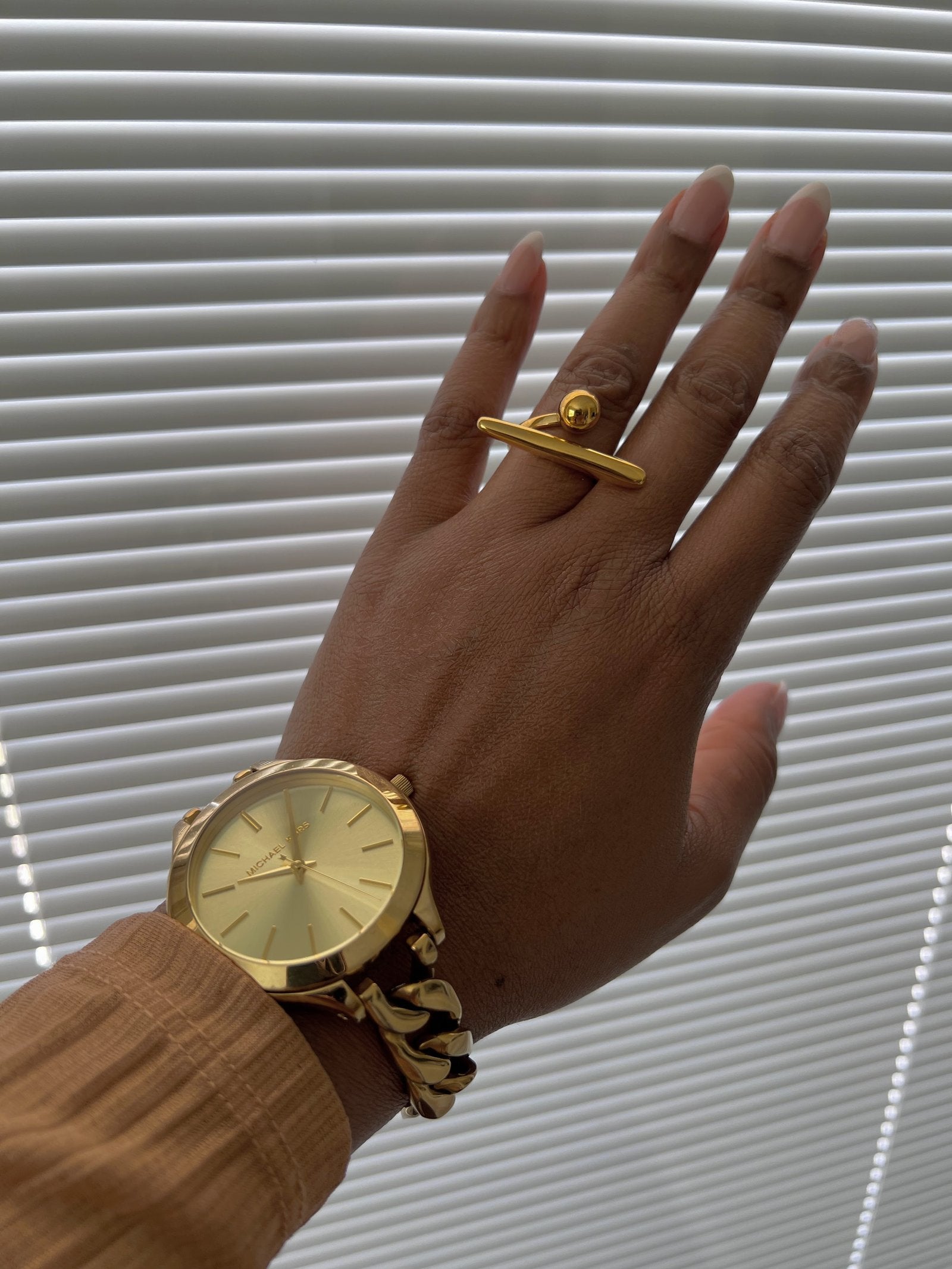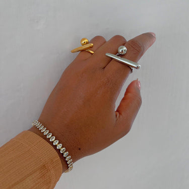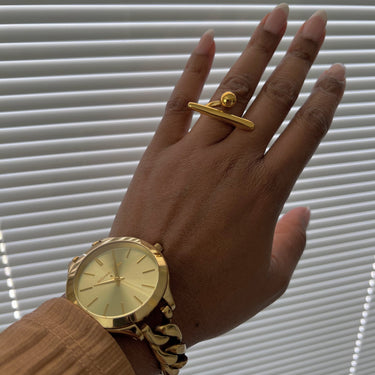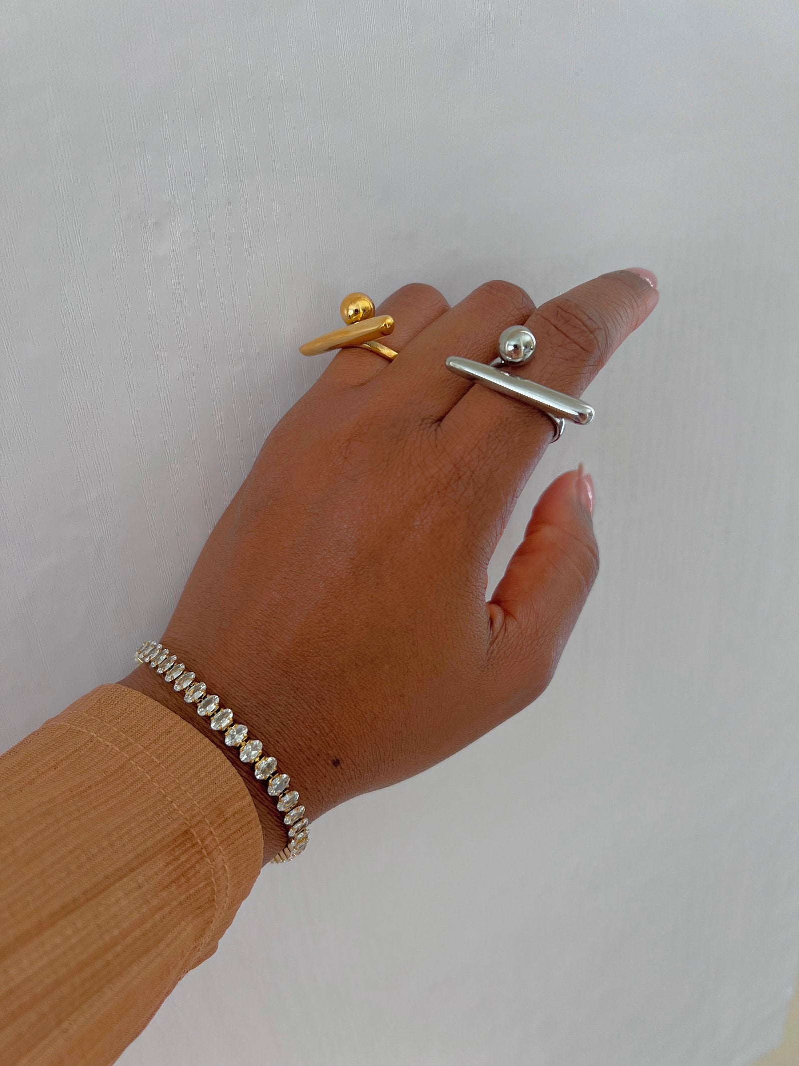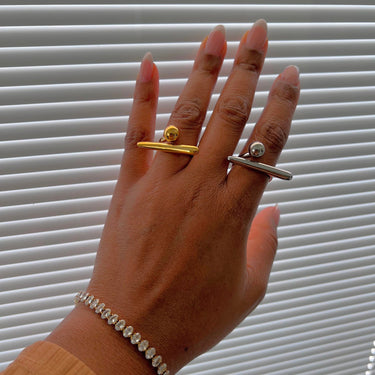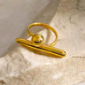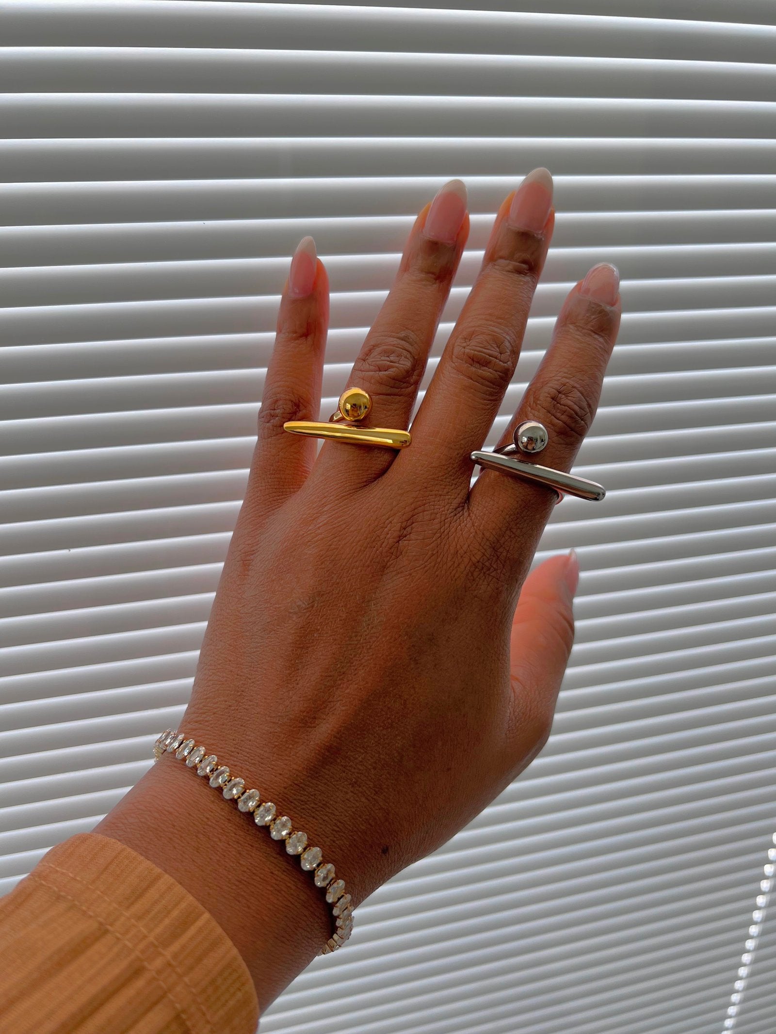 Discover the perfect balance of modern elegance and durability with this Grande Ball Open Ring. Made from high-quality stainless steel, this ring is plated with 18K gold for a luxurious finish that resists tarnishing. The bold geometric ball design features a stylish open ring that’s adjustable for a comfortable fit. Whether you’re looking for a statement piece or a sleek everyday accessory, this versatile ring is available in gold and silver finishes, making it an ideal choice for any occasion. Perfect as a gift or a stylish upgrade to your jewelry box. Available in silver and gold tones.