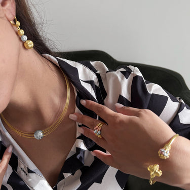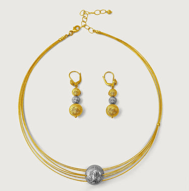 Ophira Ball Earrings & Choker Necklace Set in18K Gold