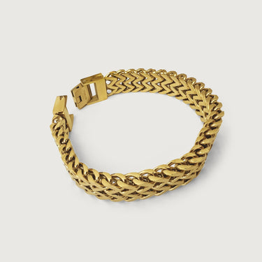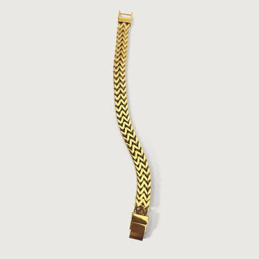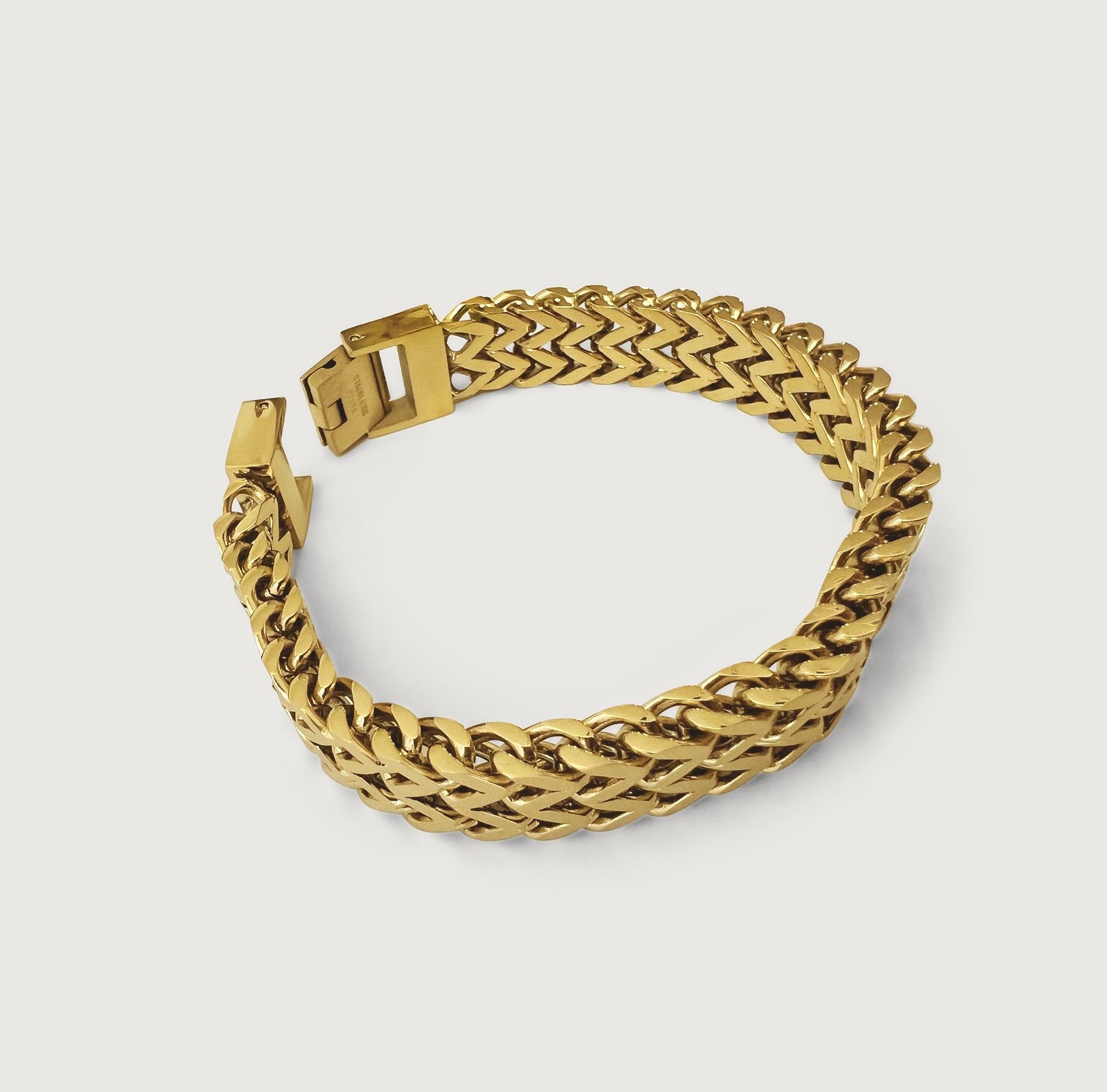 This luxurious- light catching, thick bracelet has plenty of style and polish. The rice like woven links are beautifully crafted with small stainless steel granular links and plated with 18 karat gold plated. Wear alone or add to your wrist stack. This bracelet puts a statement on your that will surely get you noticed. So, enjoy the compliments!