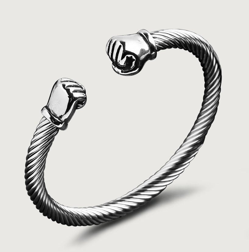 Silver Double Fist Wire Bangle Bracelet